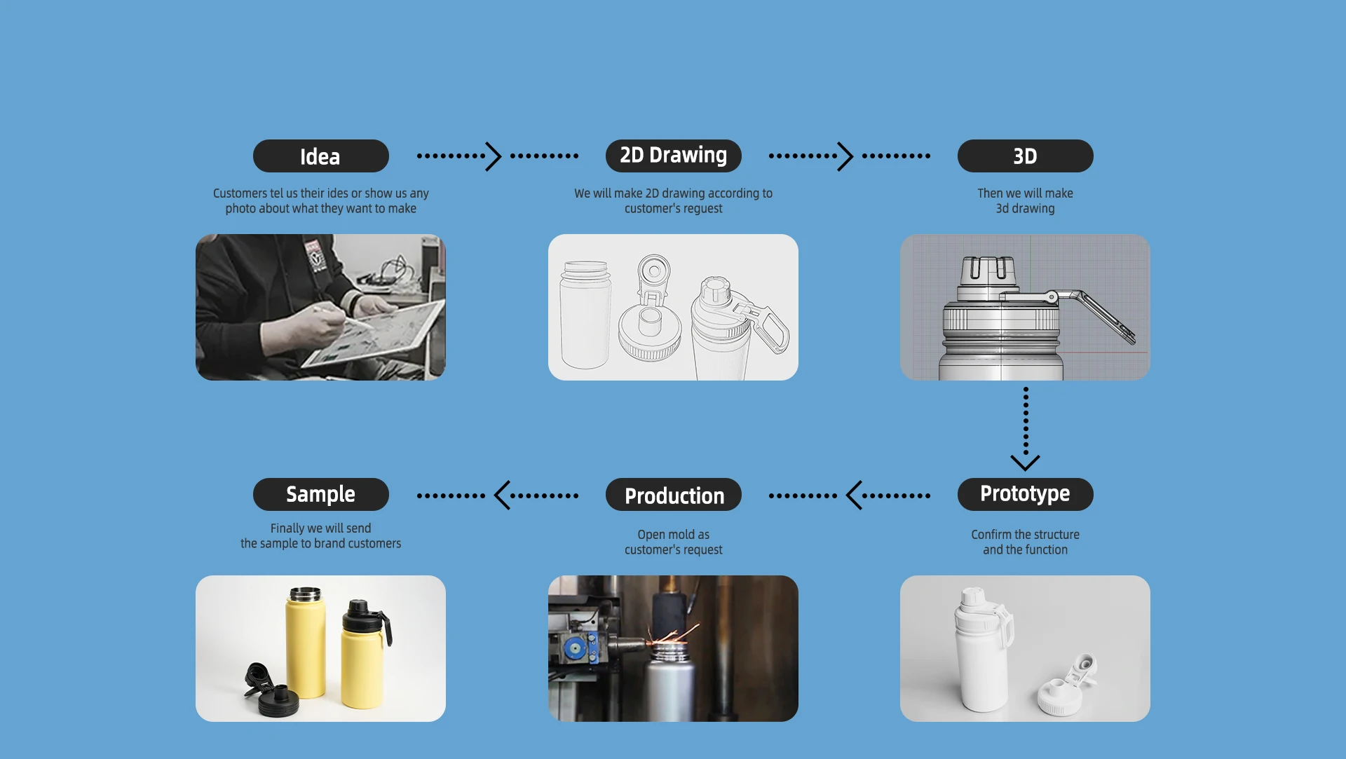 Holding over 10 Years of Experience,Our company has been designing,producing and saleing stailness steel drinkware and outdoor products for more than10 years.Our product range also covers vacuum flask,stainless steel water bottle,stainless steel tumbler,wine tumber,Coffee pot,food jar etc,We have in-house designers team to change your new ideas to the products.Our experienced designs are the reasons why retailers and distributors from the US and Europe come to us.Currently,our R&D team produces more than 50 items every year.Moreover,we welcome your ideas,and we usually rely on our advanced techniques to fill customized orders.